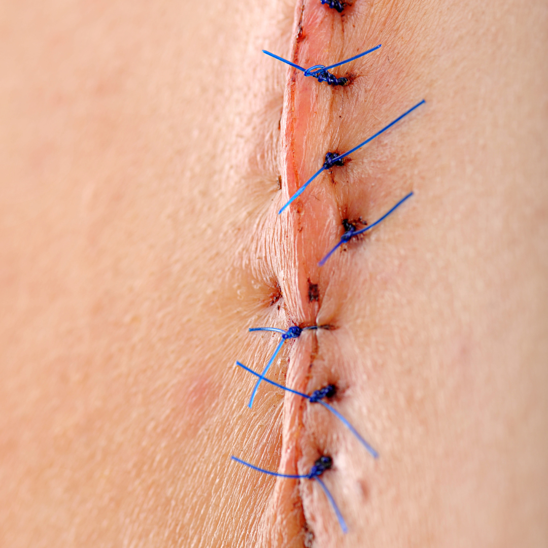 Nicht resorbierbares Nahtmaterial wird durch eine Wundnaht in Haut und Gewebe eingenäht. Es dient der festen Adaption von Wundrändern und körperinneren Strukturen.