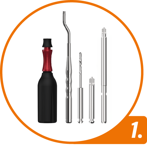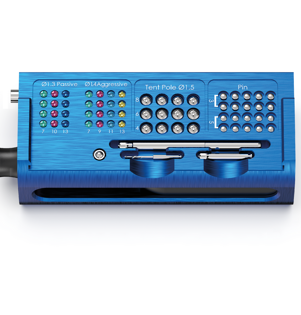 Präzise Einbringwerkzeuge ermöglichen die kontrollierte Insertion von Fixations- und Schirmschrauben sowie Pins. Sie sorgen für eine sichere Kraftübertragung und exakte Positionierung, auch in schwer zugänglichen Bereichen.